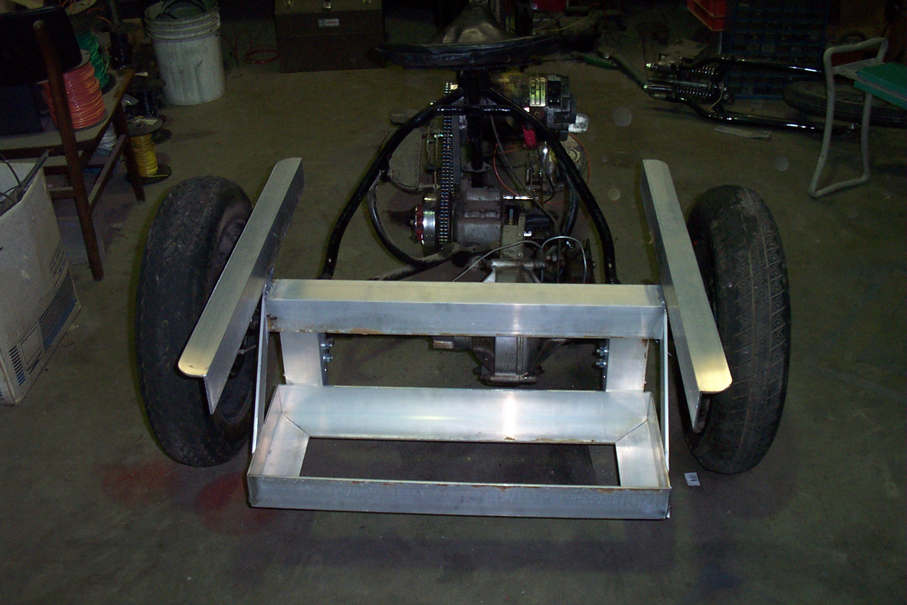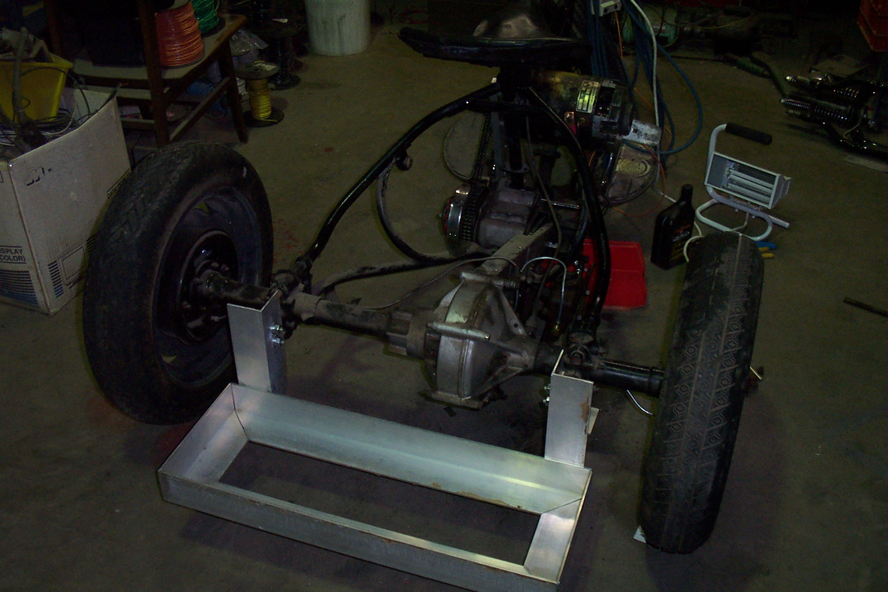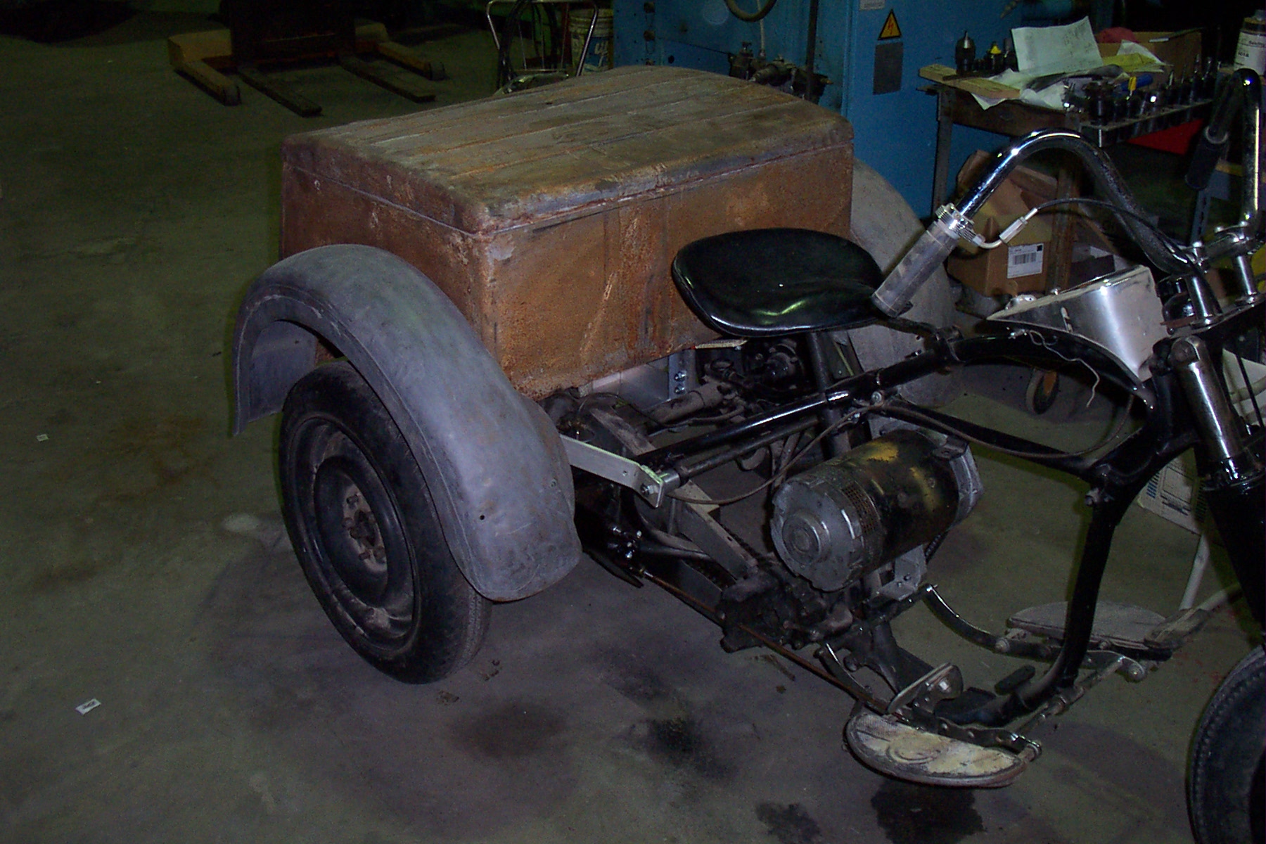 This picture shows the box set on the framework as it is expected to end up. I don't have any skills in bodywork so will have to try to find a body shop to assist in repairing the box next. In the mean time I can begin the planning on the wiring. |