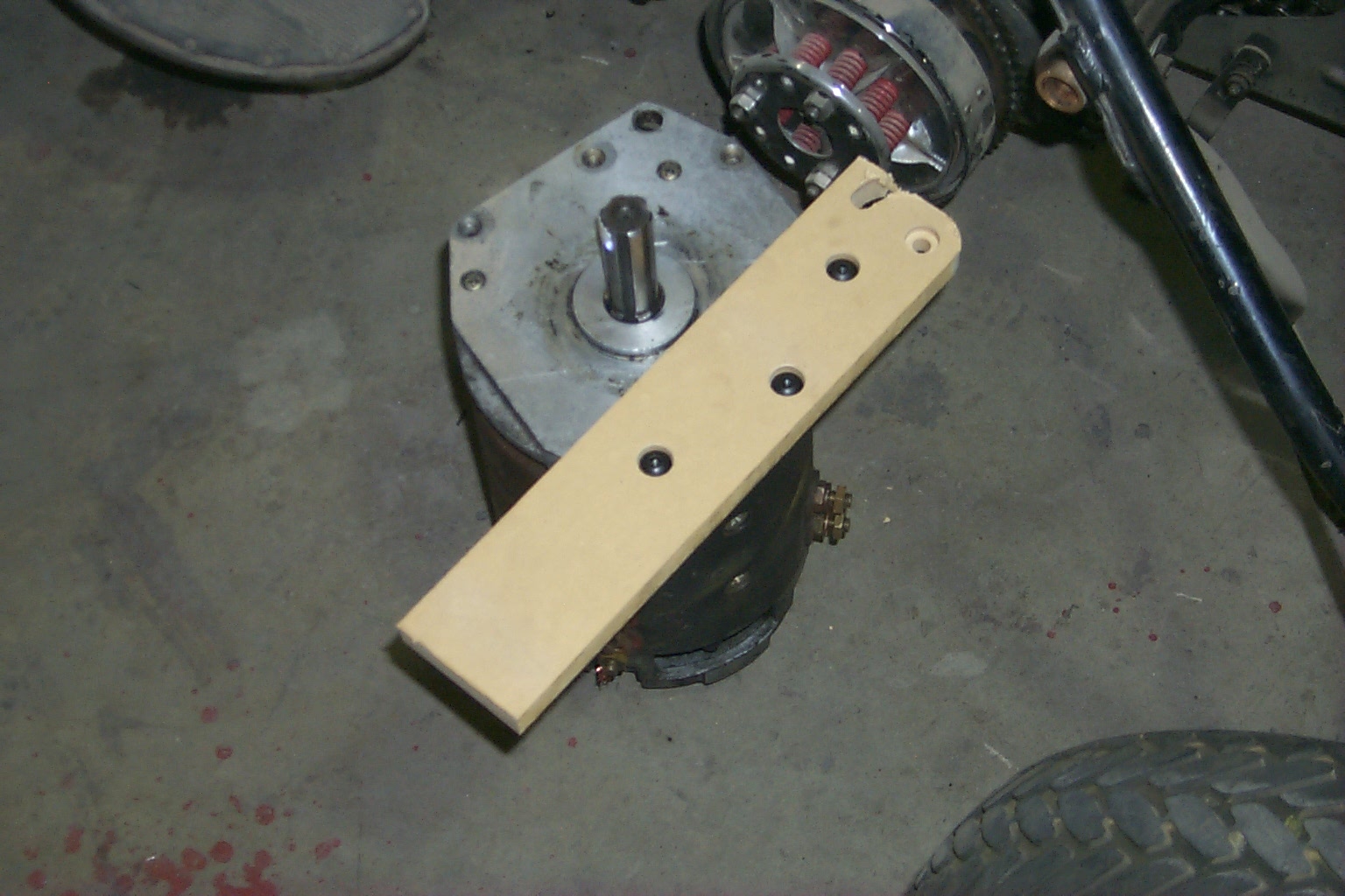 arrangement. The motor mount is bolted to the edge of the base