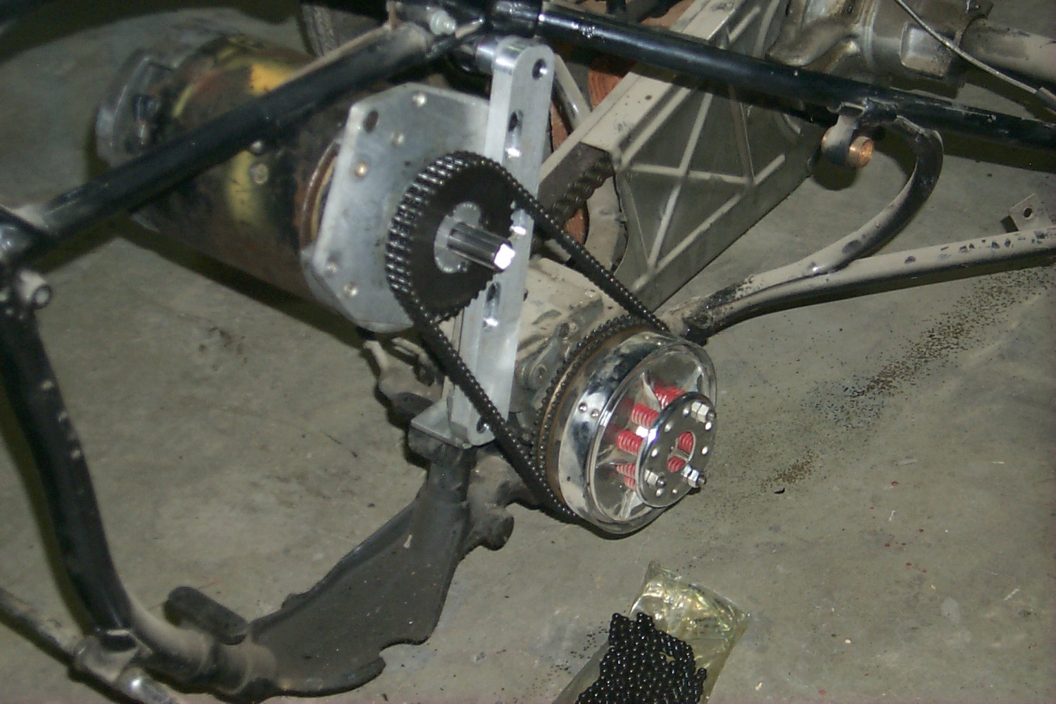 the right is the motor mounted with the drive chain attached. For